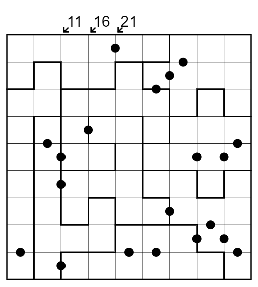 Kropki dots: Cells separated by a black dot must have a 1:2 ratio. All possible dots are given.