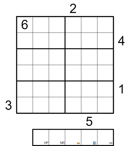 HIT POINTS: A clue outside the grid shows the sum of all the numbers in that row/column where the distance from the clue equals the number. For example, a row of 163425 would have a Hit Point value of 8 from the left as 1, 3 and 4 are in their "correct" positions and sum to 8, and a value of 2 from the right as 2 is in its "correct" position.