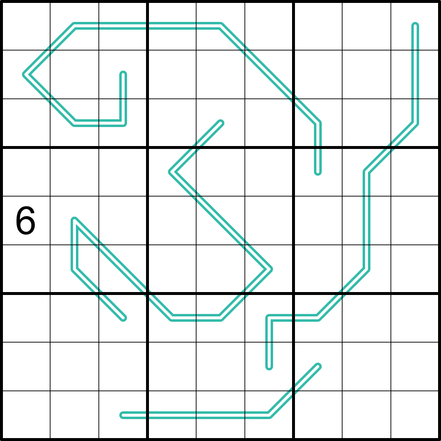• Every line in the grid is a modular line, i.e. any run of three cells must contain three digits with different remainders divided by 3, i.e. one from (1, 4, 7), one from (2, 5, 8), and one from (3, 6, 9)
