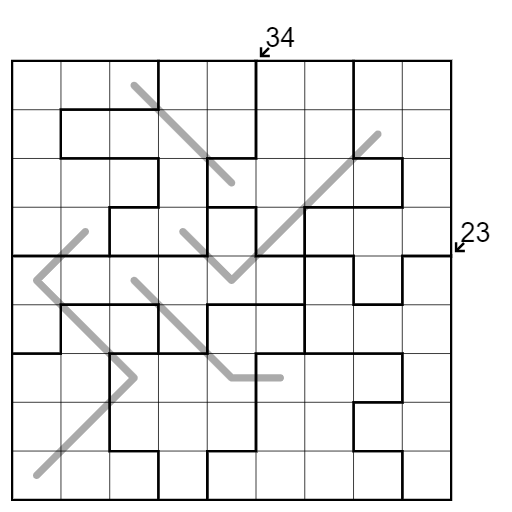 Palindromes: Digits along a grey line must read the same forwards and backwards.