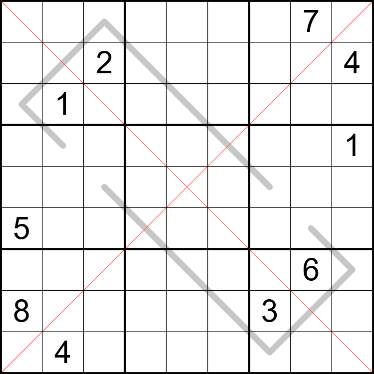 A puzzle from the Sudoku Take Out Puzzle Pack 04: Trivalent Sudoku, which focuses on the Anti-Diagonal Constraint.