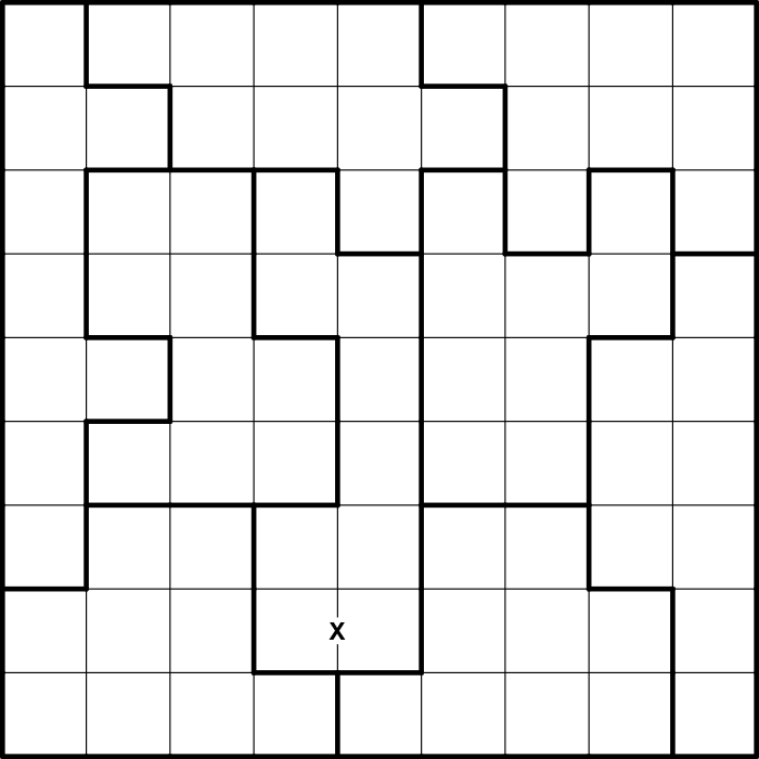 The two cells bordering the x sum to 10.