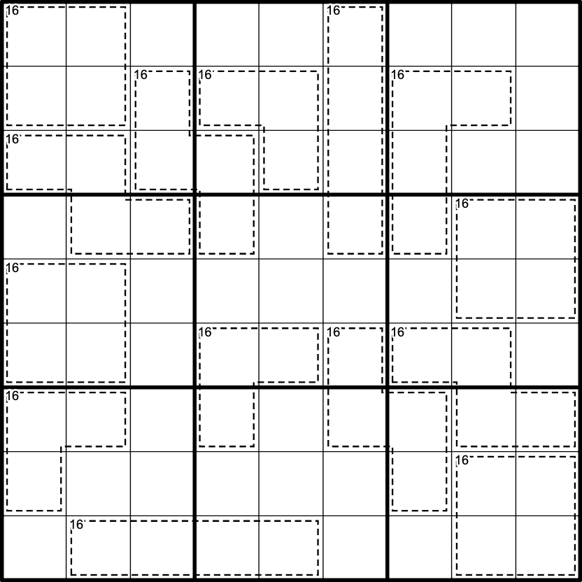 Killer Cage: In every cage, all digits must be unique and their sum must perfectly match the provided total. For this puzzle all cages sum to 16.