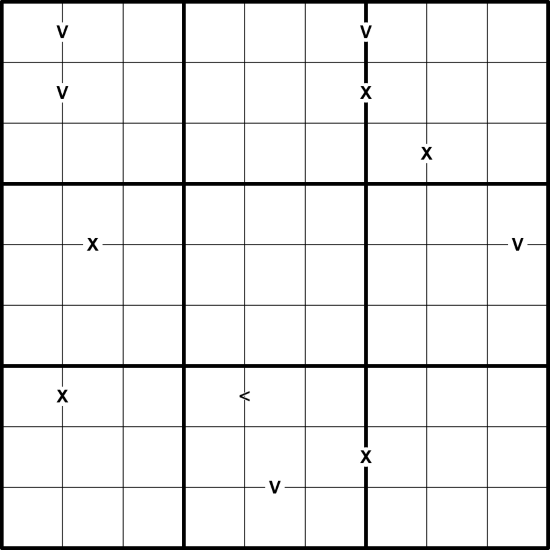 XV: Digits separated by an X must sum to 10. Digits separated by a V must sum to 5. Not all possible Xs and Vs are necessarily given.