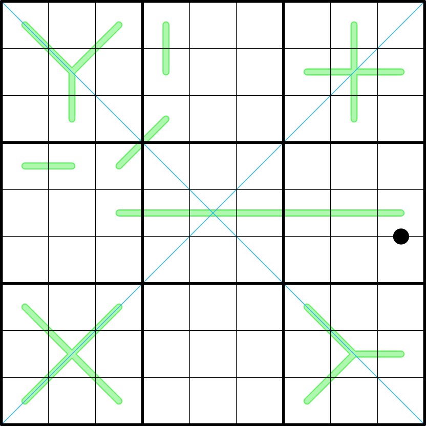 - Black Kropki: Digits separated by a black dot are in a 1:2 ratio.