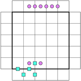 Place the digits 1-5 once in every row and column of the inner 5x5 grid.