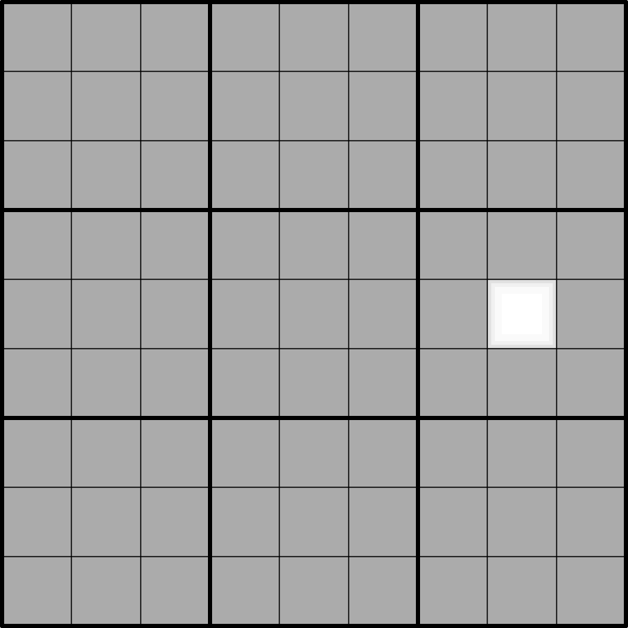 The grid is covered in fog. Placing a correct digit will clear the fog from that cell and potentially from other cells somewhere in the grid.