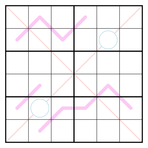 - Anti-Diagonal: An indicated diagonal may contain only two distinct digits.