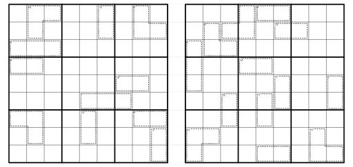 Standard Sudoku: For each of the Sudoku grids, the digits 1 through 9 appear in every row, column, and box.
