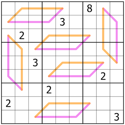 Along pink "renban" lines, digits form a non-repeating consecutive sequence in any order.