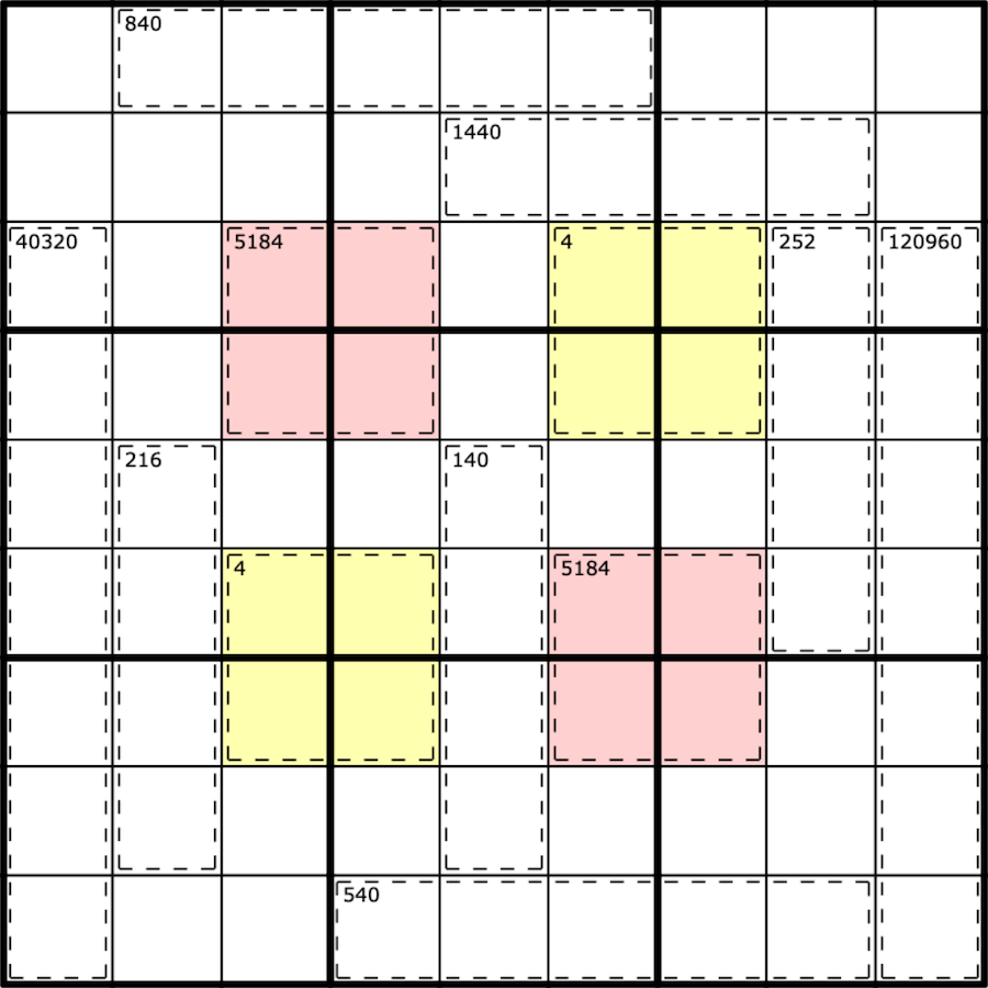 Digits in cages (which may repeat) multiply to the given numbers.