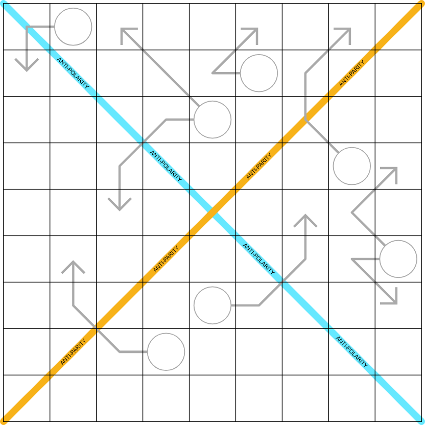 - Anti-Parity Mirror - (orange line from R9C1 to R1C9):