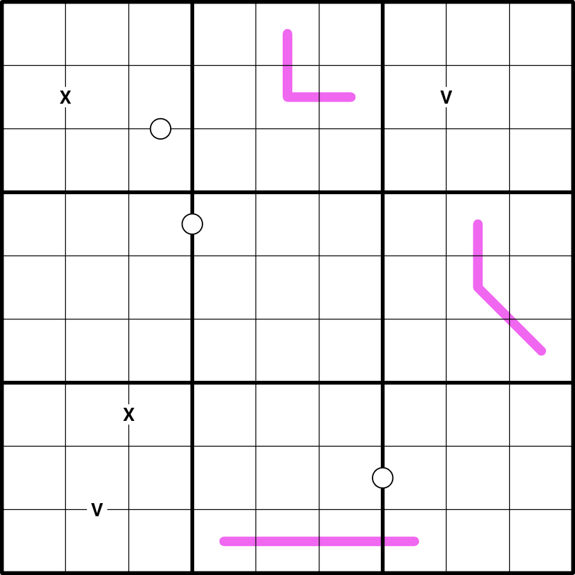 Digits along a pink renban line must be a non-repeating set of consecutive digits in any order.