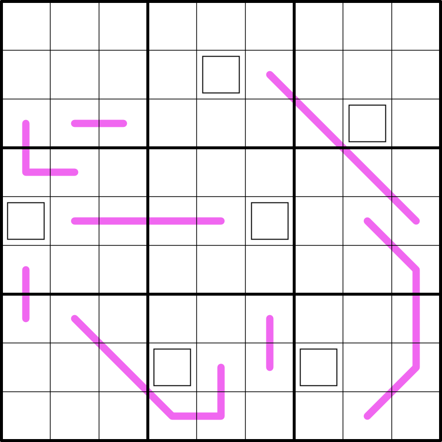 Digits along a purple line form a non-repeating set of consecutive digits in any order.