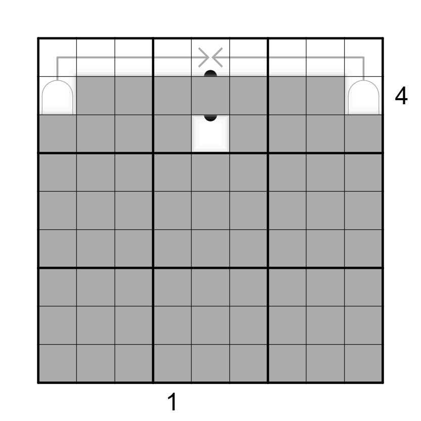 Numbered rooms: A clue outside the grid indicates the digit which has to be placed in the Nth cell in the corresponding direction, where N is the digit placed in the first cell in that direction.