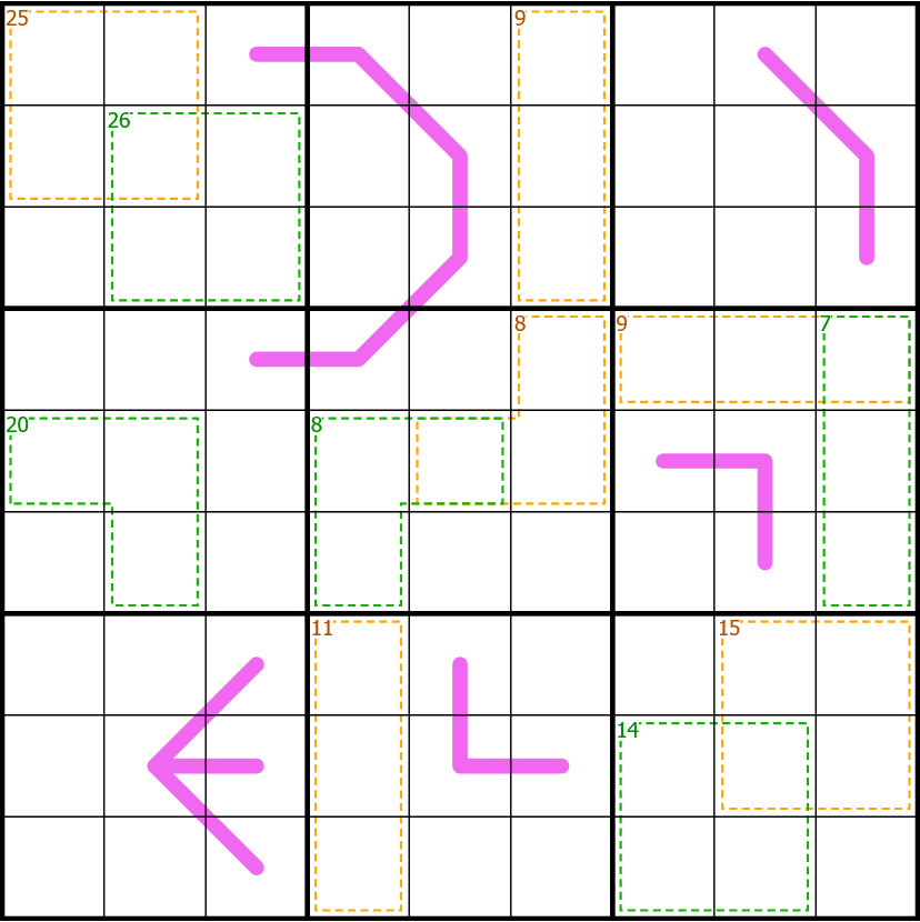 1. Normal Sudoku rules apply. Place the digits 1 - 9 once each in every row, column, and box.