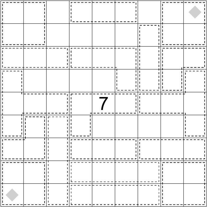 YY cages: Within each cage, the sum of the shaded digits equals the sum of the unshaded digits. Digits MAY repeat within a cage.