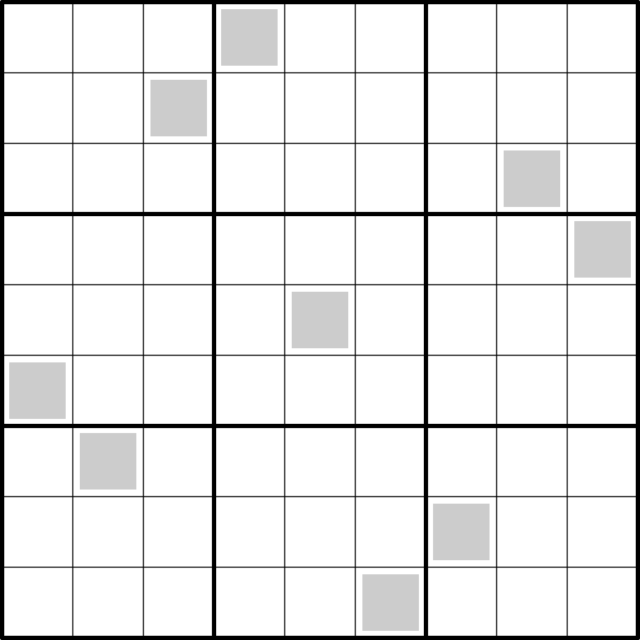 Sudoku: Normal Sudoku rules apply; place the digits 1-9 once in every row, column, and 3x3 box.