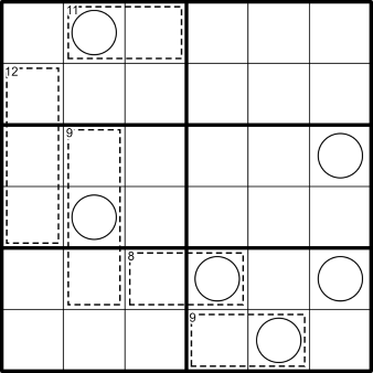• The values of cells in a Killer cage must sum to the total in the top-left corner.