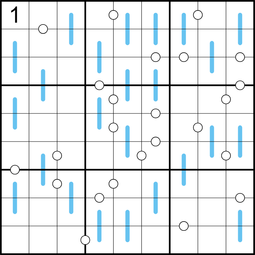 Adjacent digits on a blue rain drop (German Whisper) must have a difference in value of at least 5.