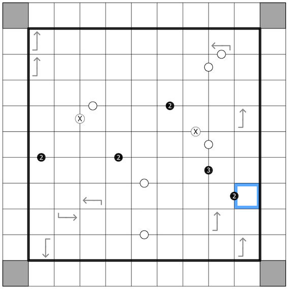 *For BitClocks touching the grid edge: cells outside the grid are treated as having parity determined by their row or column index. Cells outside odd numbered rows and columns are odd, cells outside even numbered rows and columns are even.