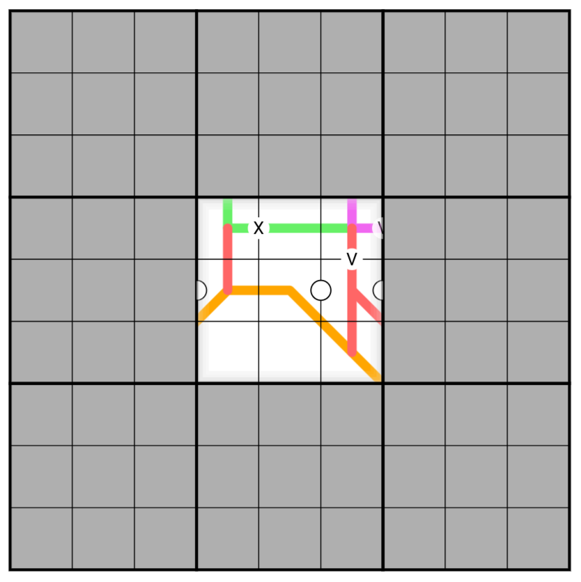 • Digits along a blue line create a sumline where the sum of digits on a line within a particular 3x3 box must be the same for all the boxes the line passes through.