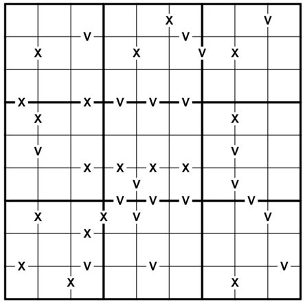 XV: Digits separated by an X sum to 10, those separated by a V sum to 5. All Xs and Vs have been given.