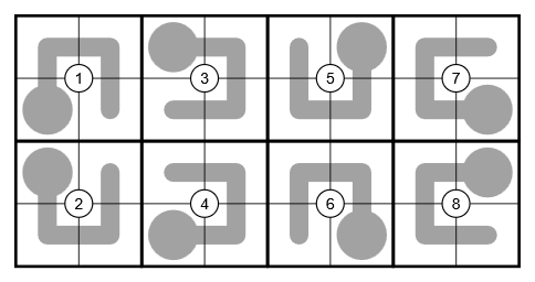 Quadruples: Digits in a circle must appear within the four surrounding cells.