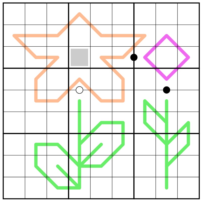 Renban line (purple): this line consists of a set of non-repeating consecutive digits in any order.