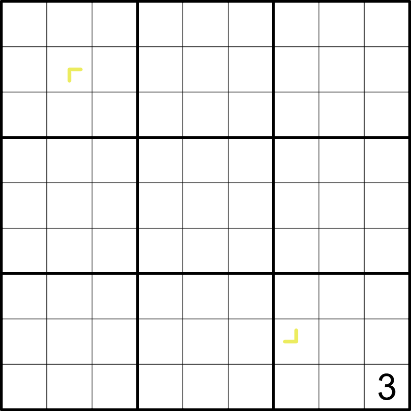 - Extend the given right angles to form isosceles triangles with the digit at the right angle being the number of cells occupied by each side of the respective triangle.