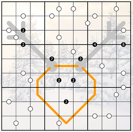 Digits in cells separated by a white dot are consecutive. Not all dots are necessarily given.