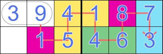 Arrow: Digits along an arrow sum to the number in the attached pill read from left to right or from top to bottom.
