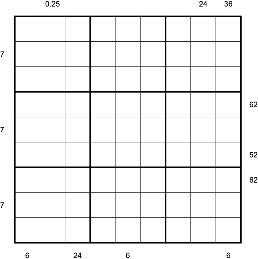 - Sudoku: Place digits 1-9 once each into each row, column, and box.