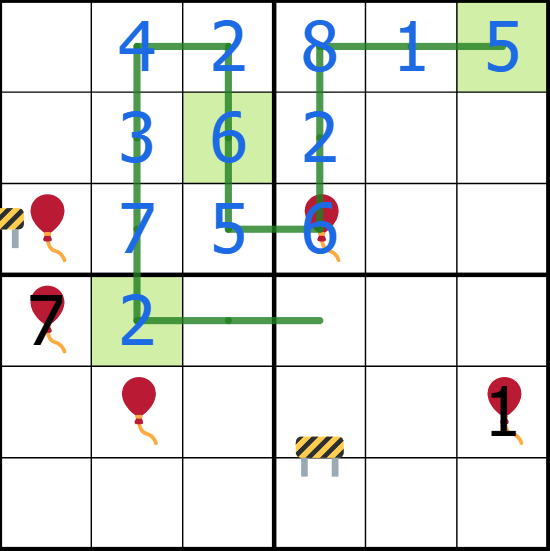 If a balloon is a checkpoint, does the digit or the value count the number of line cells in the 3x3 area?