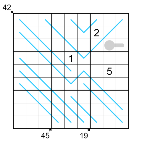 Region Sum Lines: Digits on a blue line must have the same sum in every box they pass through. They may repeat if allowed by other rules. If a line enters a box multiple times, every separate part of the line must add to the sum.