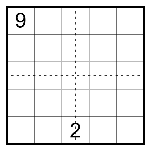 Rotational Sums of 10: All digits in the grid have a 180 degree rotational opposite. Every digit and its rotational opposite add to 10. Eg. R1C2 and R5C4 must add to 10. Eg. R3C2 and R3C4 must add to 10.