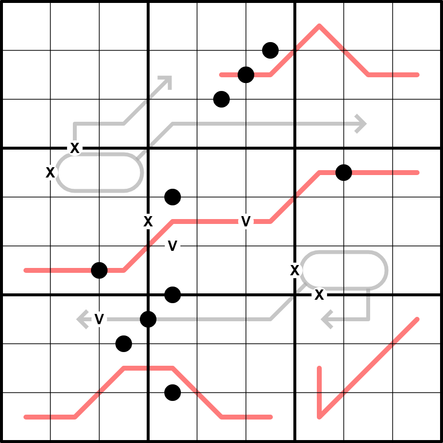 - 10-lines - Each red 10-line can be entirely divided into non-overlapping segments that each sum to 10.