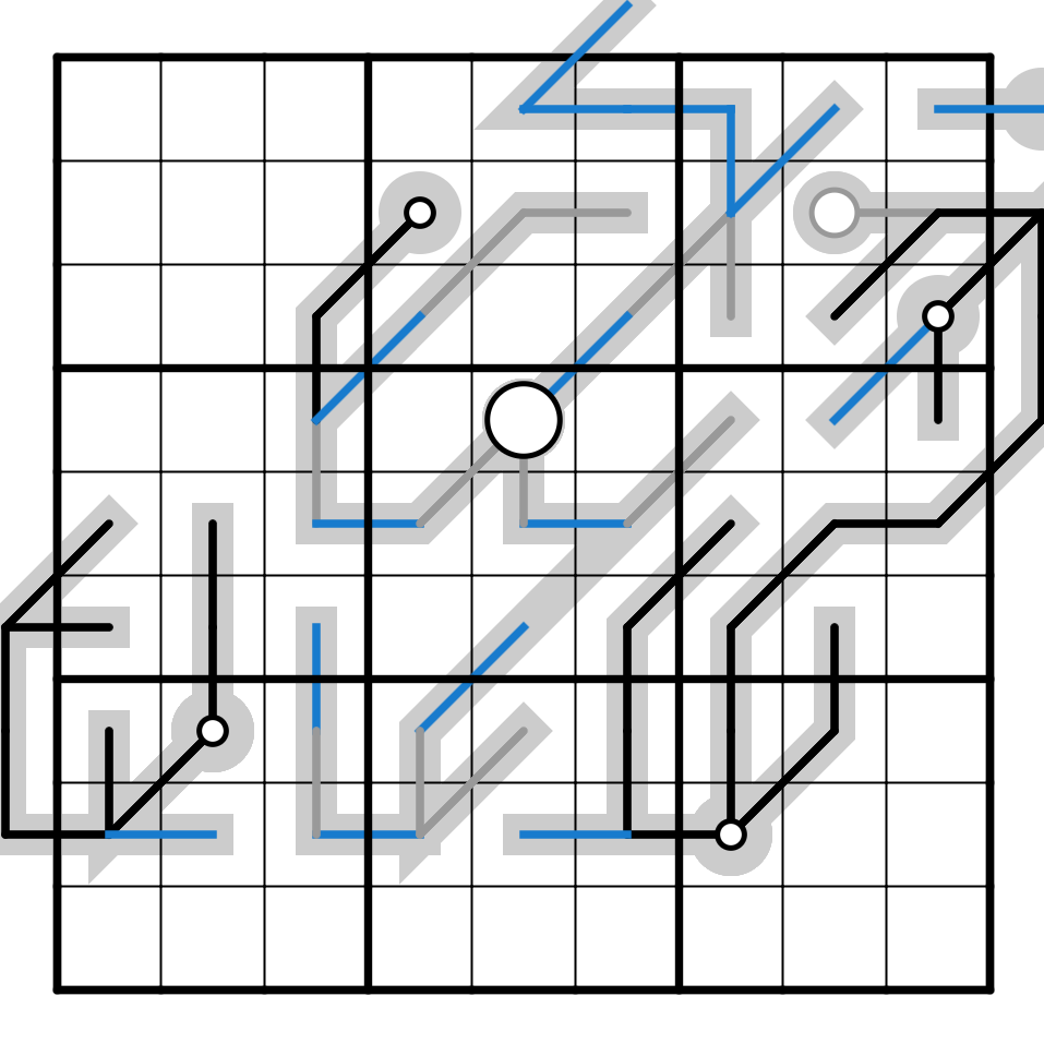 Off-grid lines are not part of the puzzle.