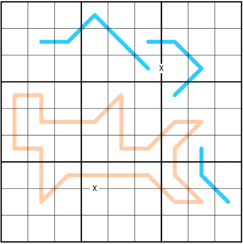 Region Sum Lines: Box borders divide each blue line into segments with the same sum.