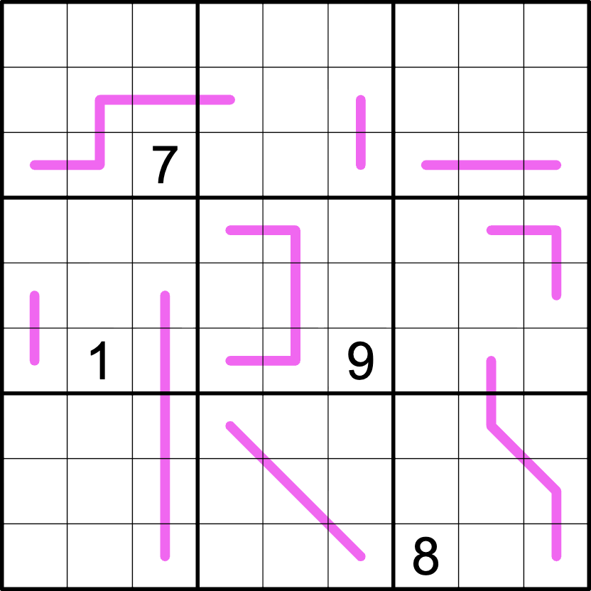 There are EXACTLY two minimum squares in each row, column, and box. A minimum square cannot appear on a renban line. It is your job to find them all.