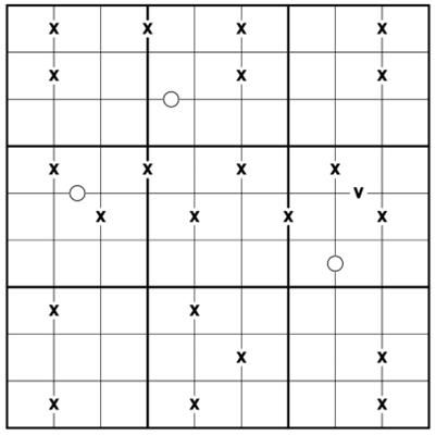 Anti-Knight: Cells that are a Knight's move apart (in chess) may not contain the same digit.