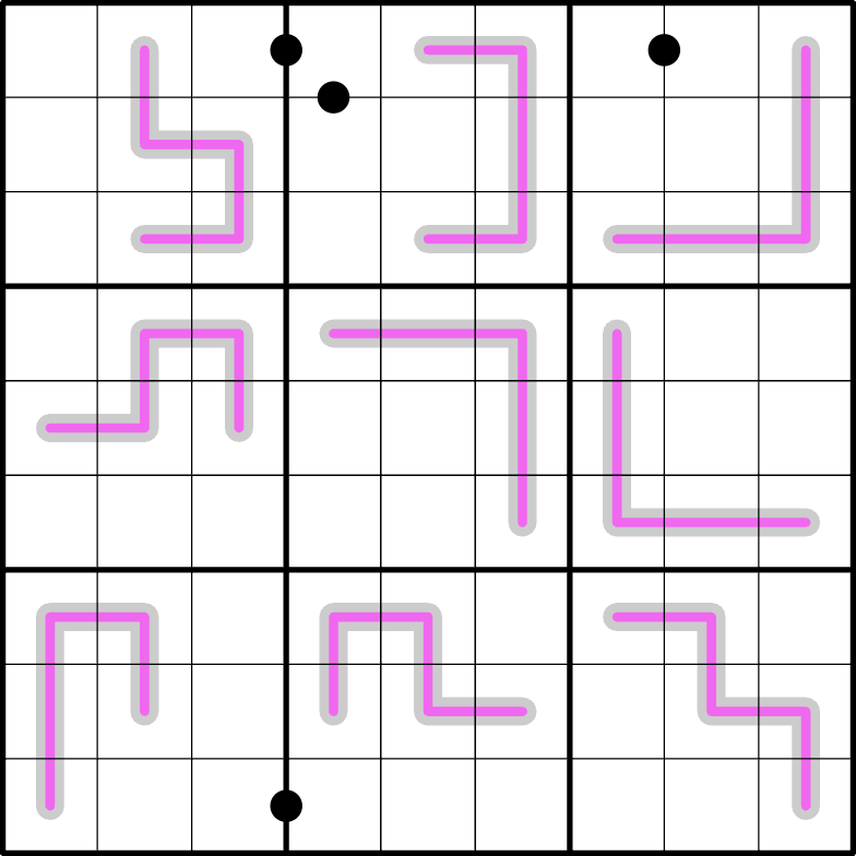 Renban Thermometers: Adjacent digits on the purple and gray lines must be consecutive.