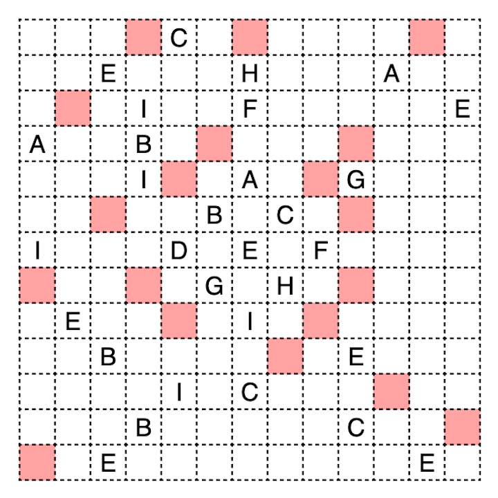 Clued cells must be part of a snake with a length of exactly that number of cells. Same letters replace the same number, different letters replace different numbers.
