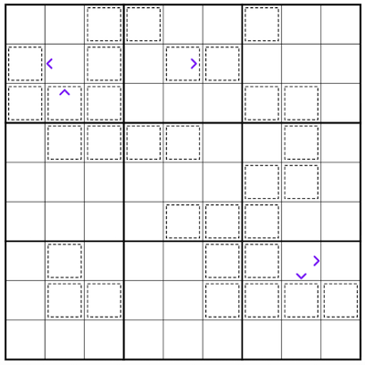 The digit in a cell with an arrow must match the count of cells of the opposite colour in the given direction. Each arrow is considered separately.