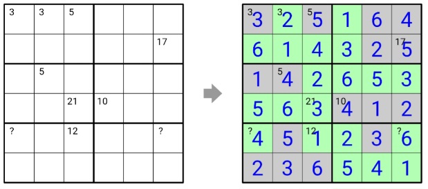 - A number in an unshaded cell gives the sum of the digits seen in all unshaded cells seen from that cell vertically and horizontally, including itself. Shaded cells block vision.