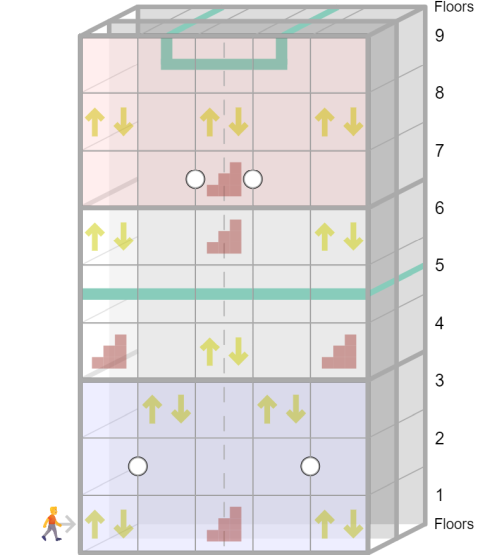 • For example, Jody could use the Elevator on Floor 4 by entering a 6 on the yellow arrows, then travelling to Floor 6 in the same column, increasing from 6 as he goes.
