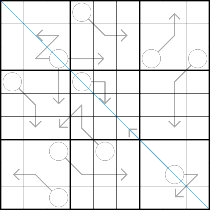 Diagonal: Digits do not repeat along the indicated diagonal.