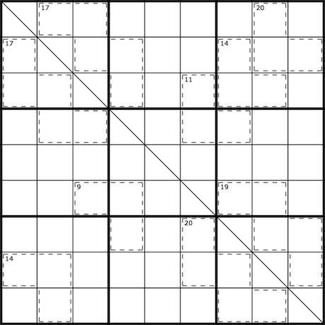 Diagonal: The negative diagonal must contain all of the digits 1-9