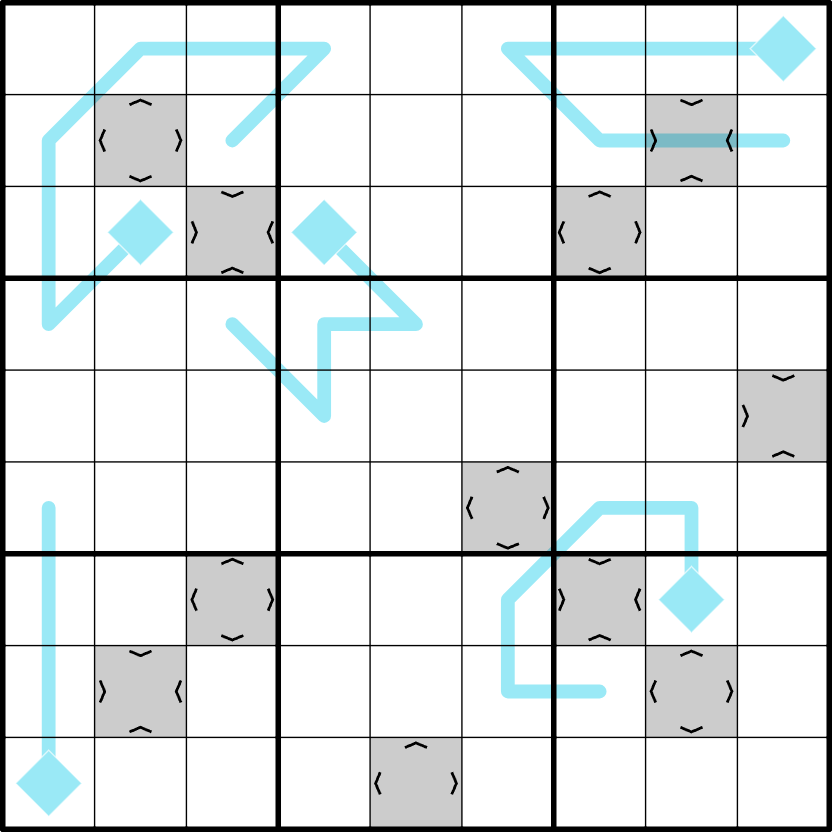Fortress (Min/Max): A cell with arrows facing inward or outward is respectively less than or greater than all of its orthogonal cells.