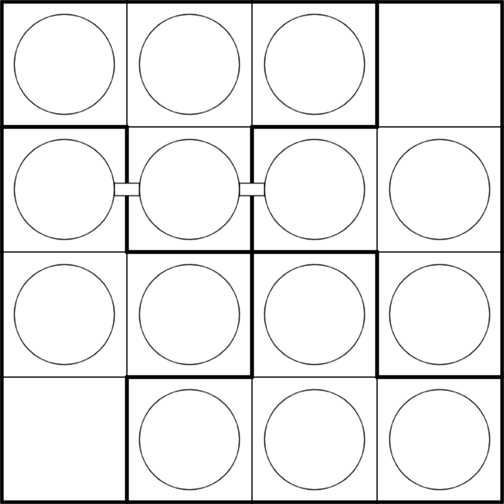 Everyone loves a simple 4x4, right? WRONG! This 4x4 is anything but simple. The rules for this 4x4 are almost identical to the rules of Parasitic Destruction. Although Parasitic Destruction is a brilliant construction with beautiful logic, Destructive Can of Worms is an enigma with the sole purpose of being confusing and frustrating. Can you outsmart this tiny puzzle?